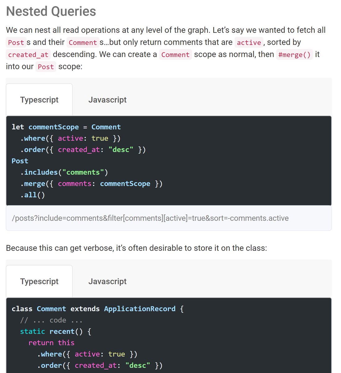 The JS side is pretty badass too. It has a nice TypeScript (and JS + decorators) story, but the ES5 version is pretty nice too! https://jsonapi-suite.github.io/jsonapi_suite/js/home …pic.twitter.com/M8ewTmBcEA