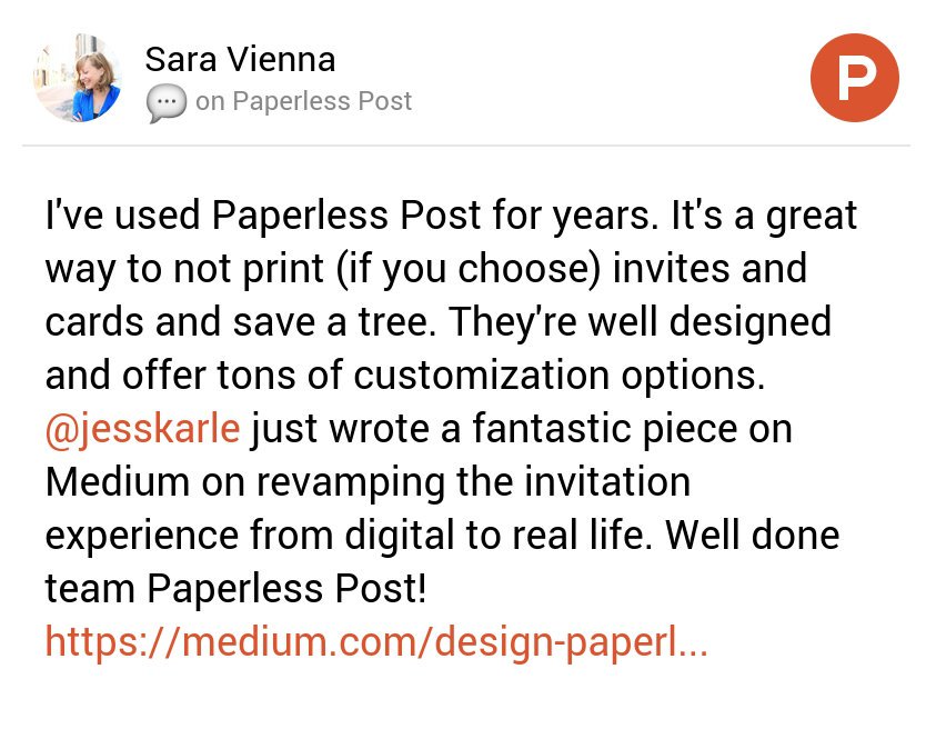 @jesskarle about how we think about@paperlesspost receivers.https://twitter.com/jesskarle/status/692027355158691844 …Thanks. Twitter will use this to make your timeline better. Undo -