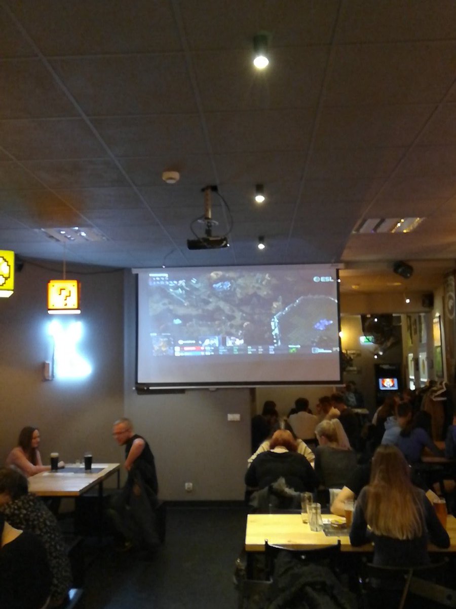 The sc2 venue is not open today, so we are watching the show from the Cyber Machina bar in Katowice @IEM See you tomorrow @RotterdaM08 @YoanMerlo @DeMusliM @x5_PiG @iNcontroLTV @Kaelaris @MaynardeSC2pic.twitter.com/67AzcrhwCS
