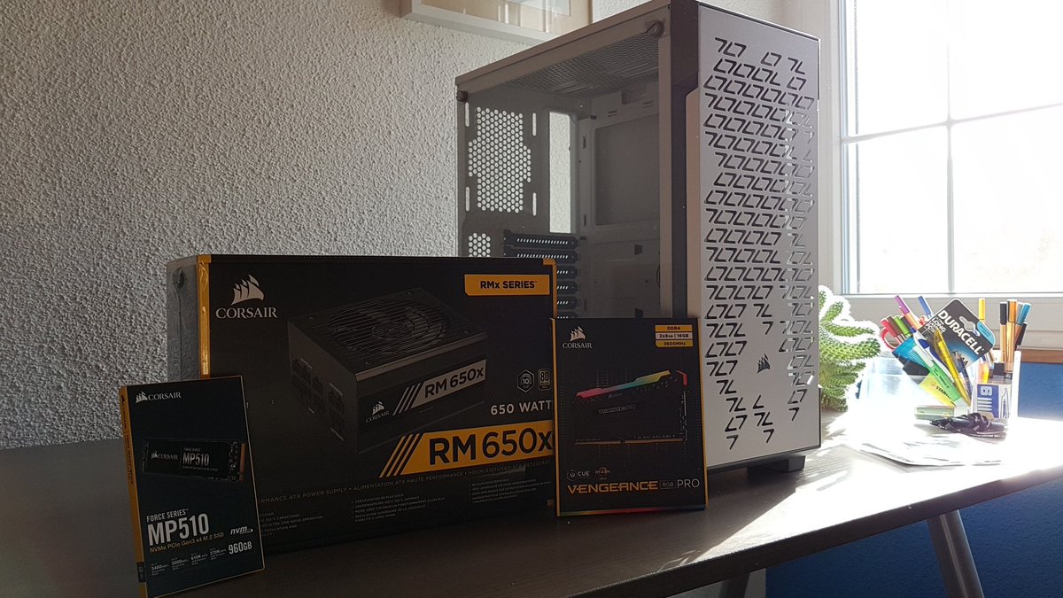 Today this awesome collection of goodies arrived for my long overdue PC upgrade. Thx @CORSAIR for producing such awesome products and supporting cool dudes like @x5_PiG !pic.twitter.com/Dk1ITXJXJ5
