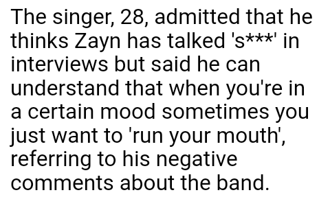 zayn talks shit? the only person who speaks shit is YOU. zayn doesn't even speak, your the one still carrying on after 6 years... get over it you immature 28 year old asshole.pic.twitter.com/1NXXFm5bas
