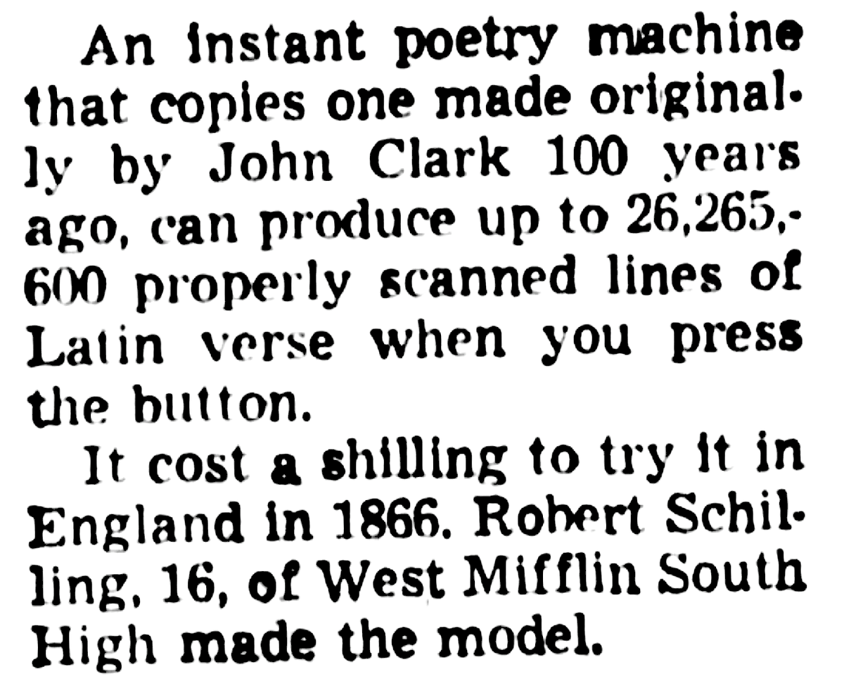 I am indeed! though I haven't been able to find a scan of "Artificial Versifying"—do you have one? some time ago, I came across this brief mention of a Pittsburgh teen reconstructing The Eureka (1966); I'd love to see the original some day!pic.twitter.com/XCy2Ak9a1G