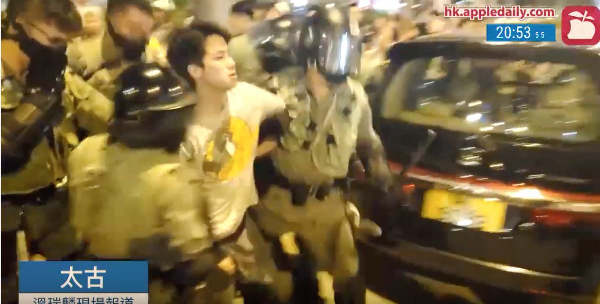 A man was arrested outside Tai Koo Station as the riot police left the station in people's jeering. (via @appledaily_hk )pic.twitter.com/1a24PwGP3L