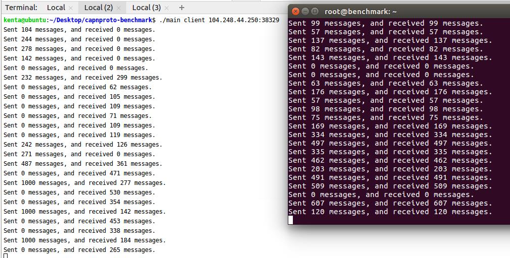 Is there any sort of explicit flow control in Cap'n Proto? Trying it 1000-way there are improvements, though huge spikes of latency in between messages sent. I can only infer that there is some batching mechanism in Cap'n Proto, and not necessarily any flow control mechanism.pic.twitter.com/Pzx6ldc3aA
