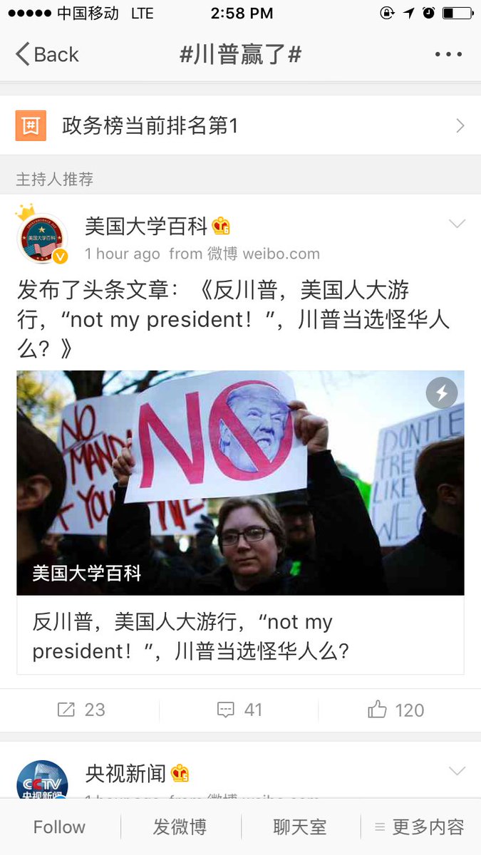 This is the top story on Weibo rn, pushed to all users: surge in hate is "because Trump *protesters* blame Chinese Americans". Y'all.pic.twitter.com/a8K61Hjsuf