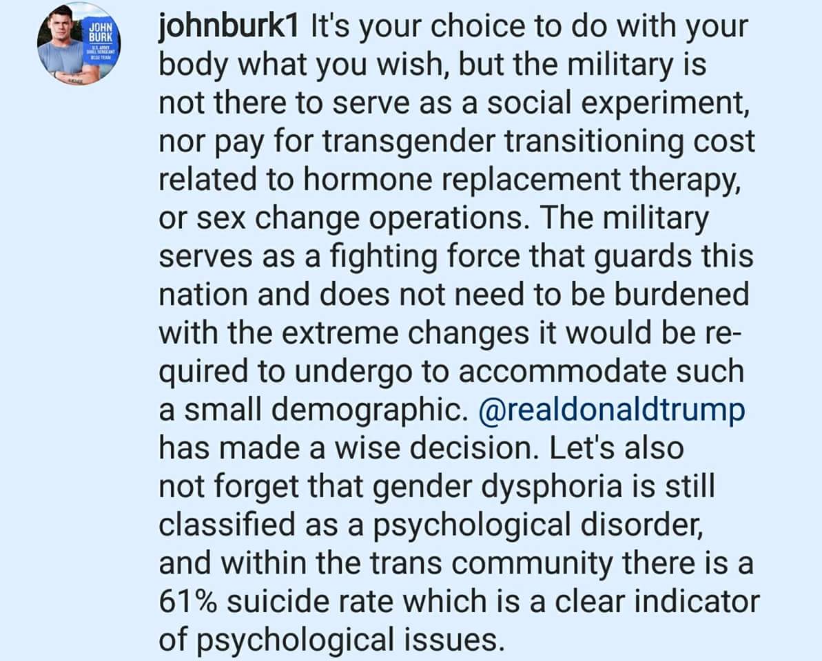 Being able to serve in our military is a privilege not a right. It should not be used as a means to get free unnecessary health services.
