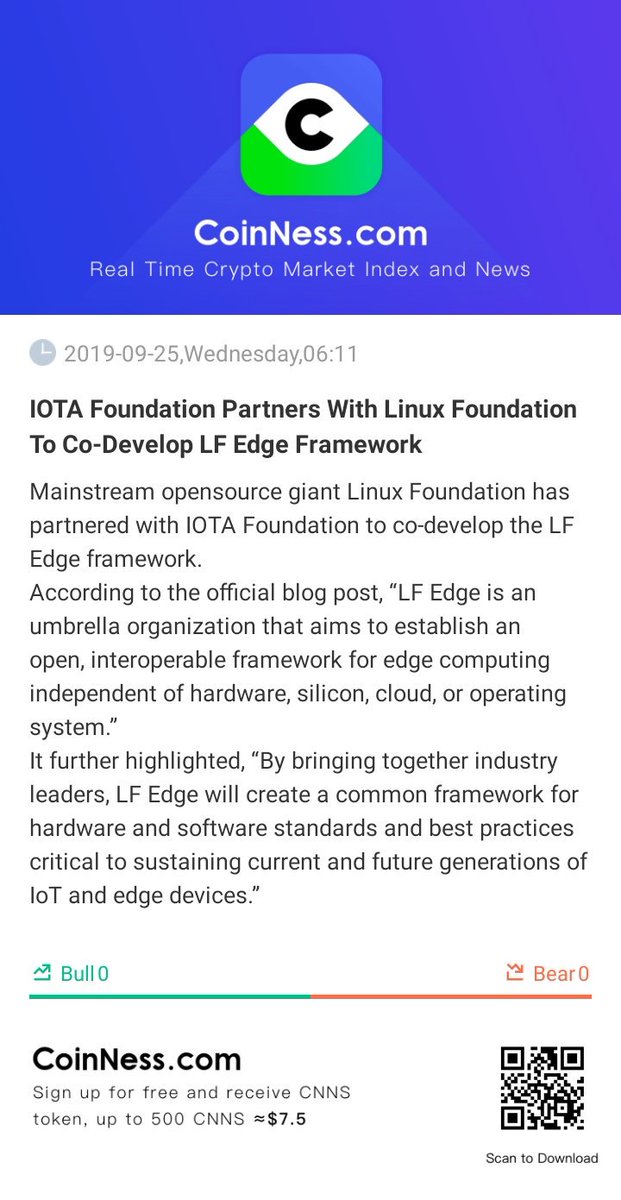 [IOTA Foundation Partners With Linux Foundation To Co-Develop LF Edge Framework] Mainstream opensou... https://bi.city/s/rg7IV4 pic.twitter.com/Yc6TnMDuuu