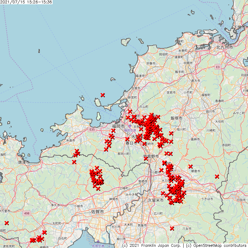 【九州北部地方(山口県を含む) 気象情報 2021年07月16日 05:05】 九州北部地方では、16日夜遅くにかけて落雷や竜巻などの激しい突風、降ひょうに注意してください。
