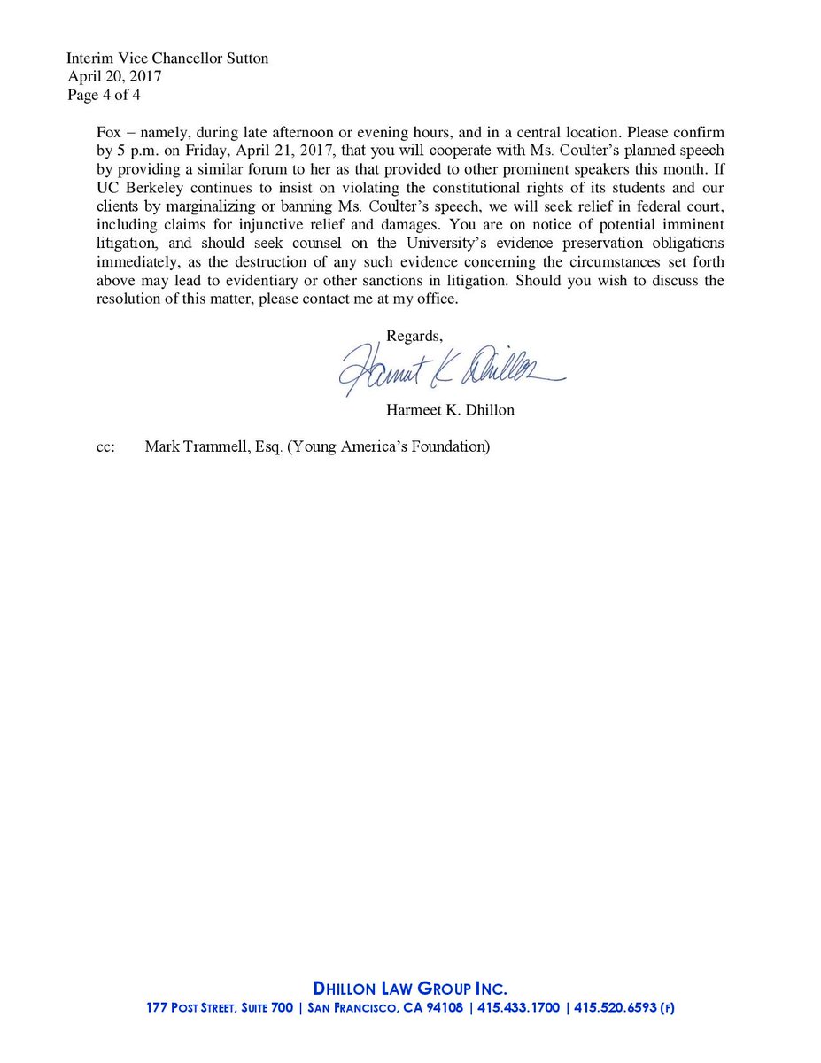 @pnjaban Harmeet's mic drop letter to cowards@UCBerkeley -