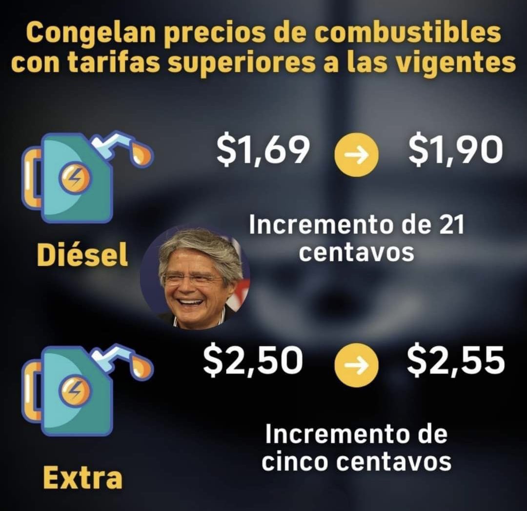 #Lasso,congela el precio de la gasolina después de subirle casi 50%, y el diésel 90%. Cómo cuando congelaron el dinero de los pobres después de devaluarlo en el 2000. Se congracia con el#FMI y al pueblo otro#latigazo. Solo nos queda la#Resistencia#26Octubre.pic.twitter.com/Bisgtumc5Z