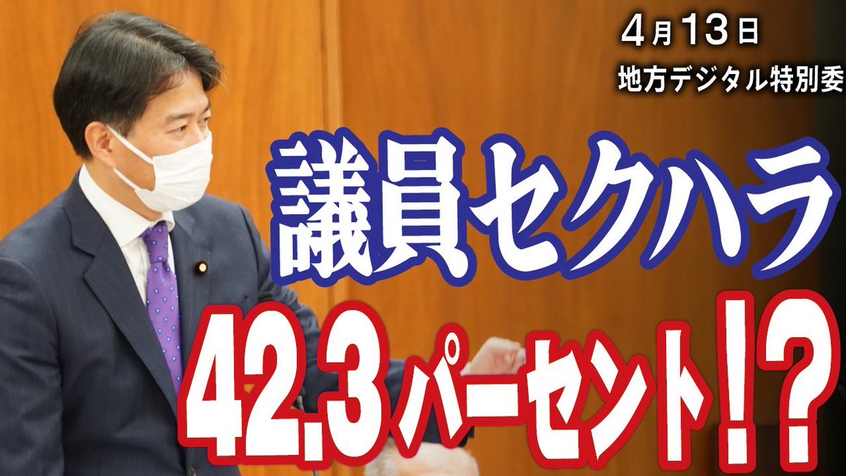 昨日の質疑。導入は議員の受けるセクハラについて。国家戦略特区、農地取得特区の続き。野田大臣との論戦をご覧下さい。 議員セクハラ42.3パーセント!?