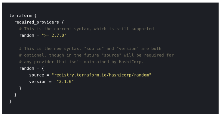 Preview of upcoming syntax in Terraform for pulling providers from private registries, air-gapped environments, and more. https://www.hashicorp.com/blog/adding-provider-source-to-hashicorp-terraform/ …pic.twitter.com/gxhqQunUA9