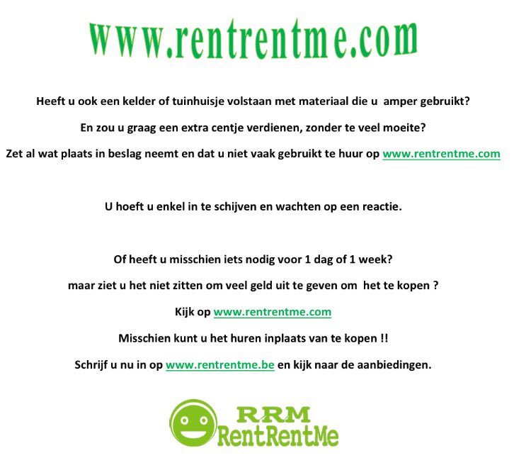 http://rentrentme.com het plaats waar je materialen kan huren of verhurenpic.twitter.com/yqB4VooPYh
