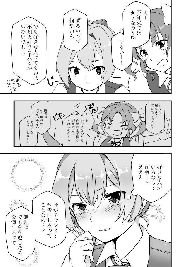 【新刊告知】不知火の恋を描いた、野図さんとの合同本「恋忍ぶ不知火」をC93で頒布します。52p700円。スペースは金曜日東ヨ29a、日曜日東セ14です。 「星占いのいう通り」を担当します、星占いの結果を受けて司令をプラネタリウムに誘う不知火のお話ですpic.twitter.com/Trbm2kdd4V
