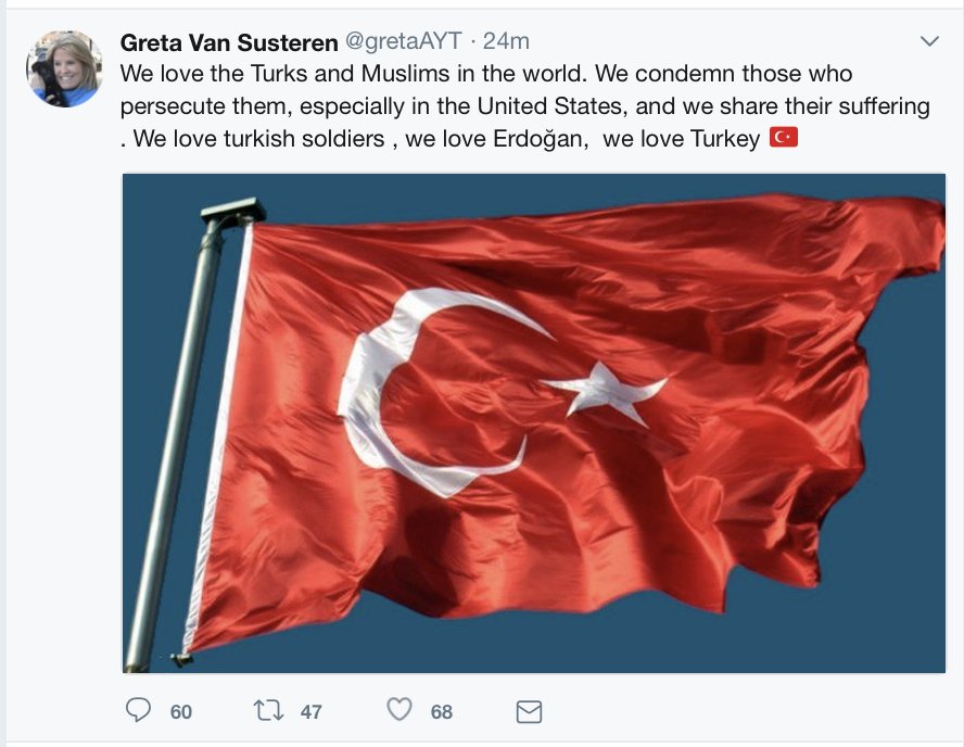 It appears that pro Turkish President hackers have taken over Greta Van Susteren's Twitter account.pic.twitter.com/aLOSljf0yQ