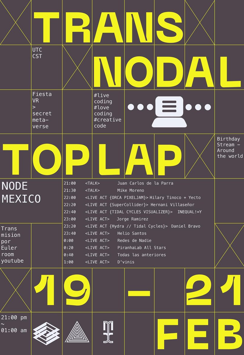 Details emerging of the transnodal livecode stream 19-21 Feb!! https://transnodal.toplap.org/