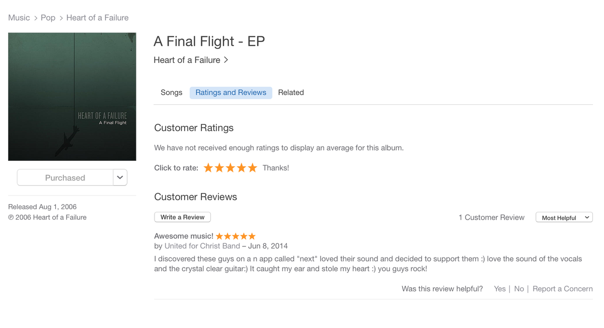 @yaynext) listened to my old band on the app, bought the CD & left a review. Social proof?#crazypic.twitter.com/xkzoTE8455