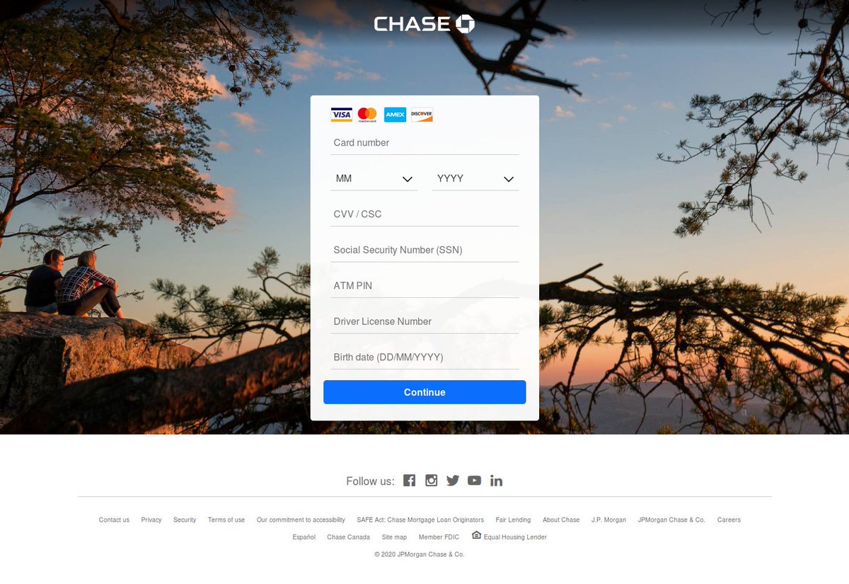 @Chase phishing site using a different kit: https://secureconnection02b-chase02-verify.ddns[.]info/ Also, a much more legit sounding domain than the previous one...@JAMESWT_MHT@JayTHL cc@Spam404Online (1/2)pic.twitter.com/OzVUFRSGLa