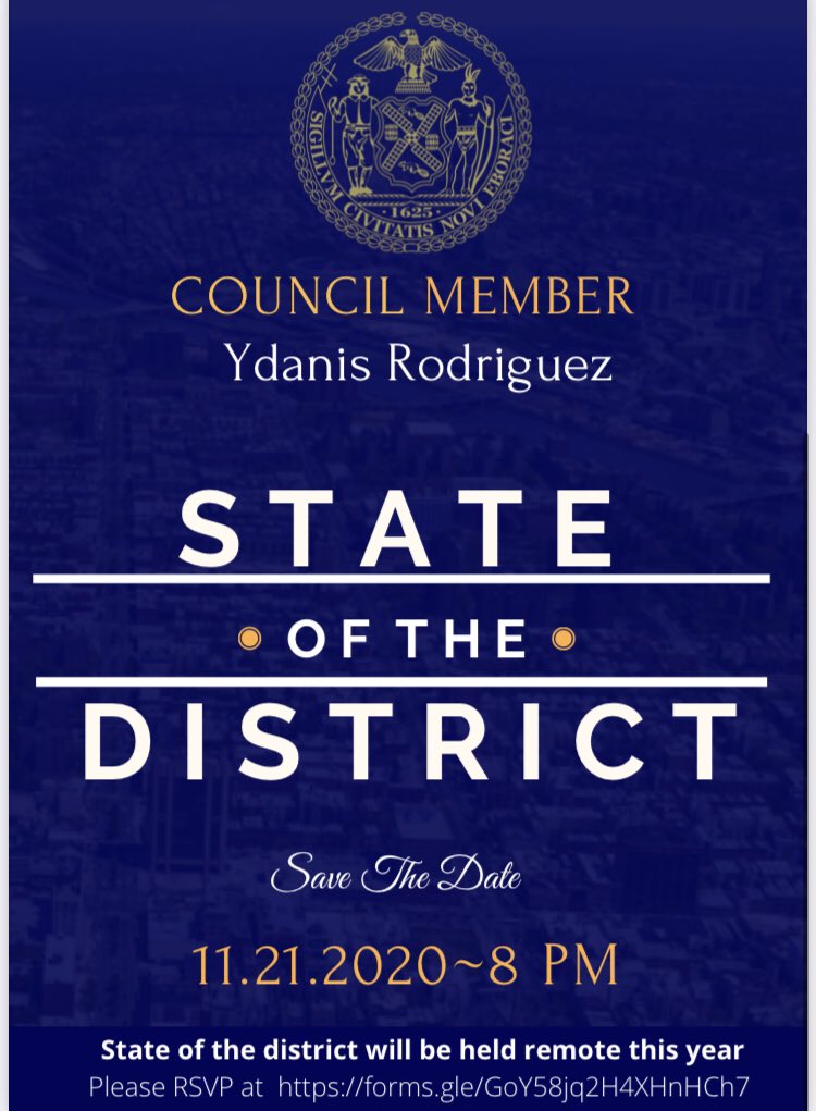 @8PM for my virtual 10th Annual State of the District Address! ¡Únase a nosotros este Sábado, 21 de Noviembre@8PM para el Décimo Discurso Anual de Rendición de Cuentas! Confirme su Asistencia Aquí / RSVP Here; https://docs.google.com/forms/d/e/1FAIpQLSe3E-zL3IBYZDxj8Y4YJEMHlh_A4savTxT6icTRjBwG0E4jJA/viewform …pic.twitter.com/UCVOGRTzuB