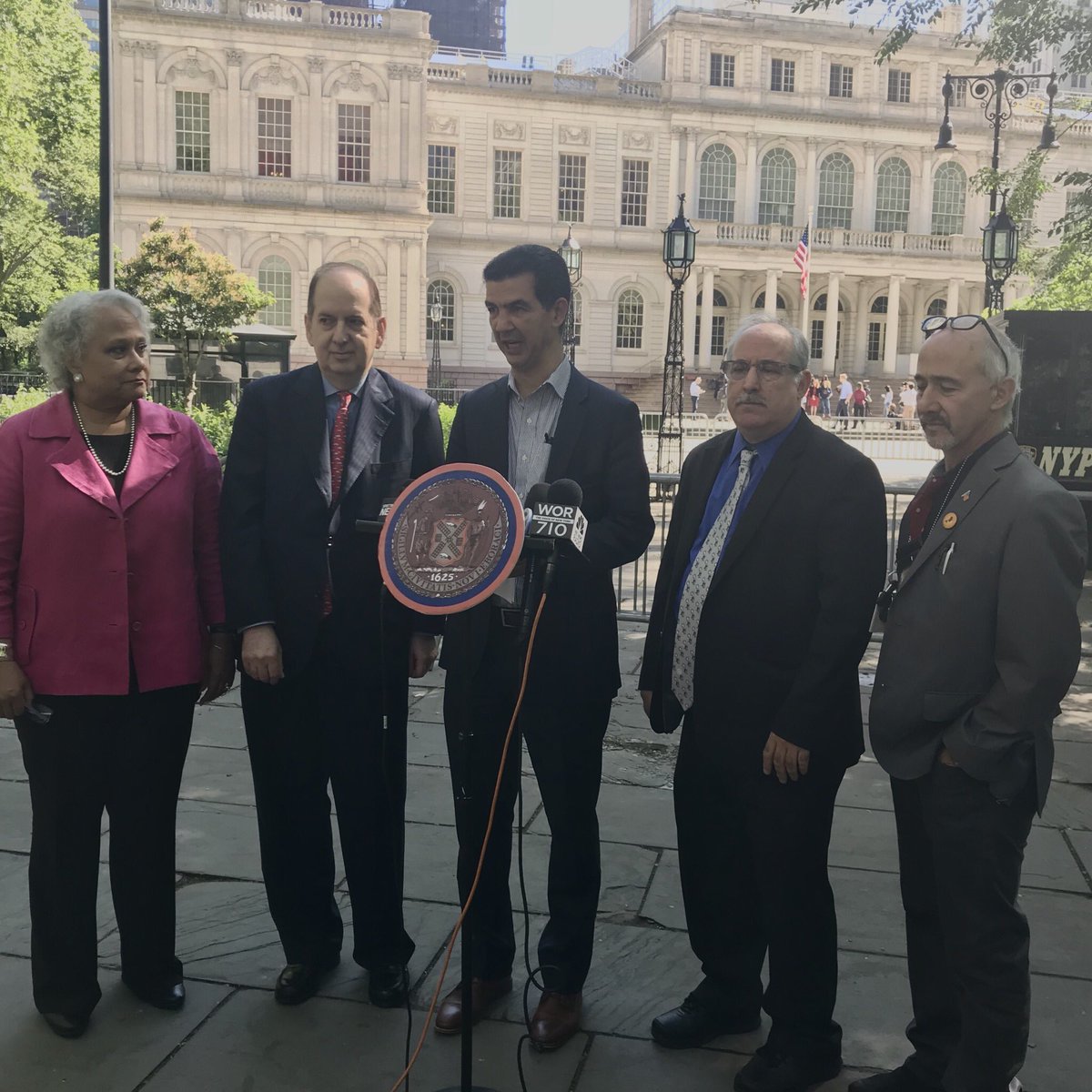 Standing with members of the press and the New York Press Club to restore the press’ right to report the news and protect the truth. The press must be able to park near where the news is happening without worrying about being ticketed.pic.twitter.com/YS69ToEnBS