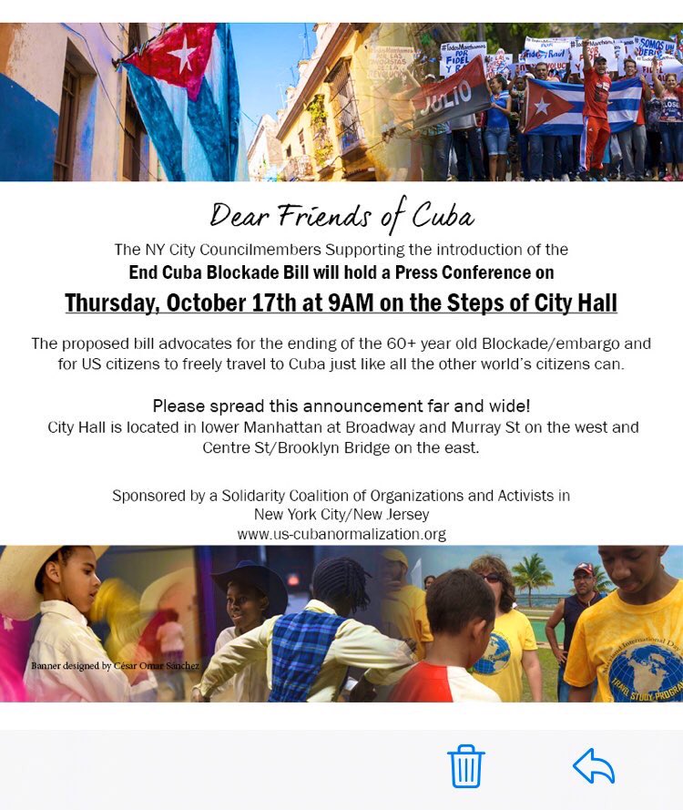 Join us today as we rally to end the embargo and travel ban in Cuba 🇨🇺!! Today!!! Location: City Hall Steps Time: 9:00AMpic.twitter.com/1xDIuSZU6O
