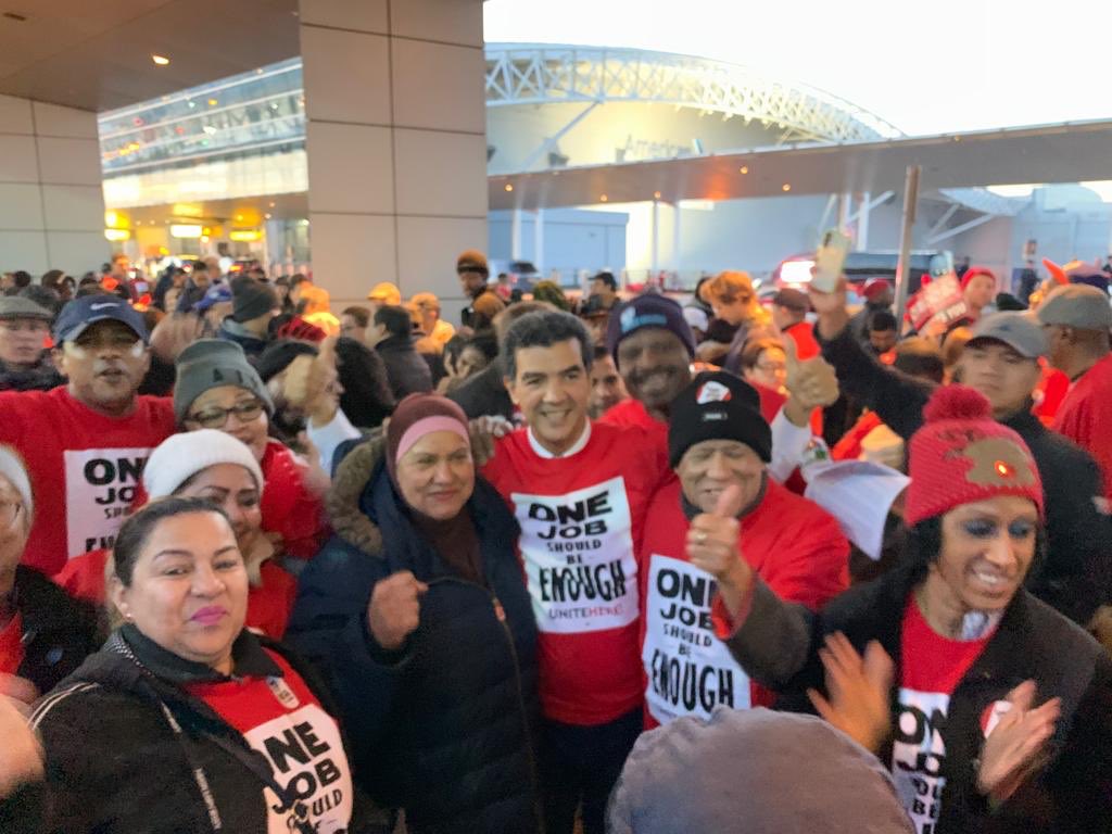 Together with @unitehere100 demanding decent treatment of the workers! One Job should be enough and that extends to all workers across our country! #UniteHerepic.twitter.com/wVoZn3PGGS