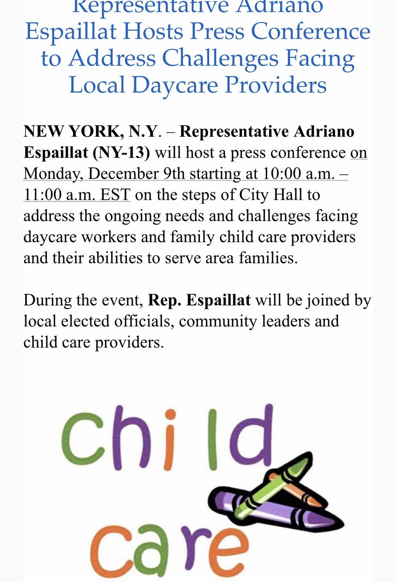 Today at 10AM I will be joining my colleague @RepEspaillat as we address the challenges many local daycare providers face in #NYC!