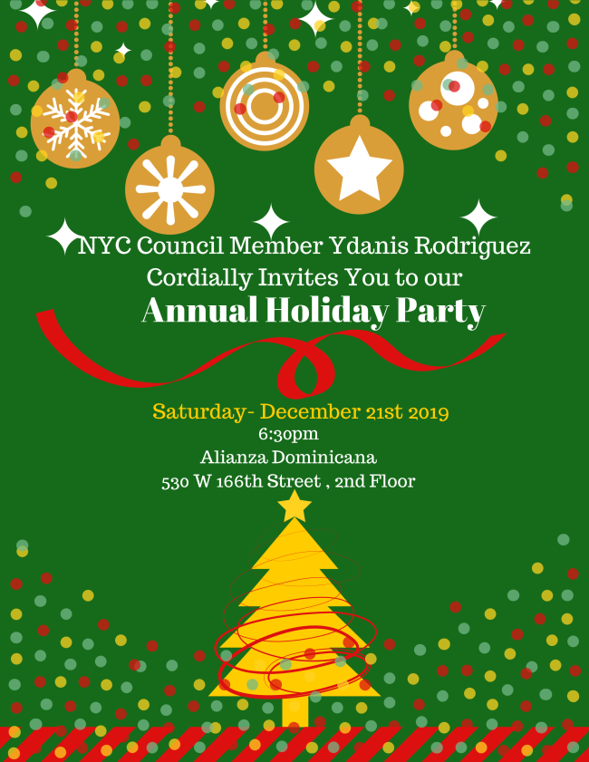 Es con gran honor invitarlos a usted y a su familia a nuestra fiesta anual de fin de año. ¡Venga y celebre todo el trabajo duro y los logros realizados para Northern Manhattan!pic.twitter.com/GNBtHsatMa