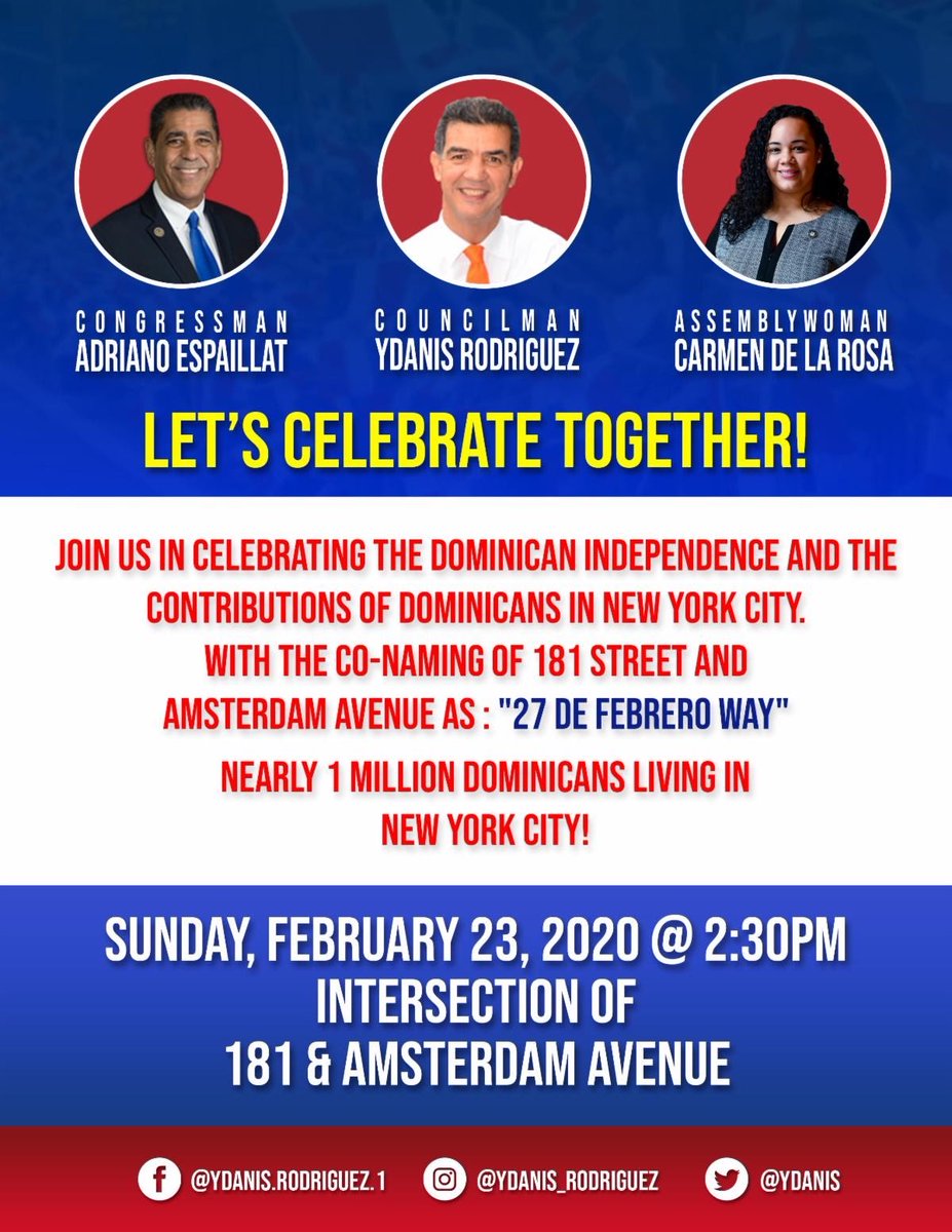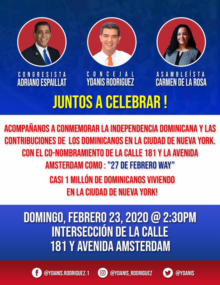 Join us today we co-name 181st St. and Amsterdam Avenue, “27 de Febrero” in honor of Dominican Republic Independence Day!https://patch.com/new-york/washington-heights-inwood/wahi-street-be-renamed-dominican-independence-day …