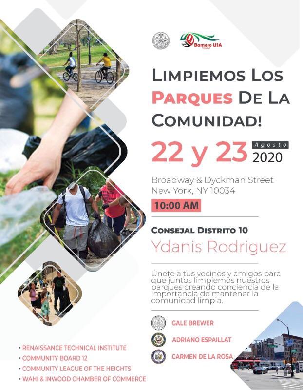 Únase a nosotros este sábado y domingo 22 y 23 de Agosto a las 10AM para una limpieza del parque comunitario! Venga con amigos y vecinos para que juntos limpiemos nuestros parques locales y las calles circundantes,...pic.twitter.com/jBskDtAdvg