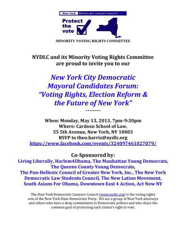 @hunterw @ydanis FYI: This Monday: @NYDLC #NYCMayoral Forum on #VotingRights & #ElectionReform!pic.twitter.com/KUHsTkEqxQ