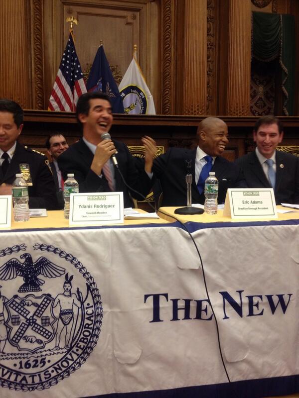 "Let's welcome our Manhattan borough president," @ydanis flubbing @EricAdamsBP2013's arrival to #VisionZero forum.pic.twitter.com/bvSjQtOPRh