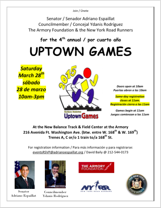 The 4th annual Uptown Games are this weekend! Join me @ the New Balance Track & Field Center at the Armory Sat @ 11AMpic.twitter.com/J5XOalr2r4