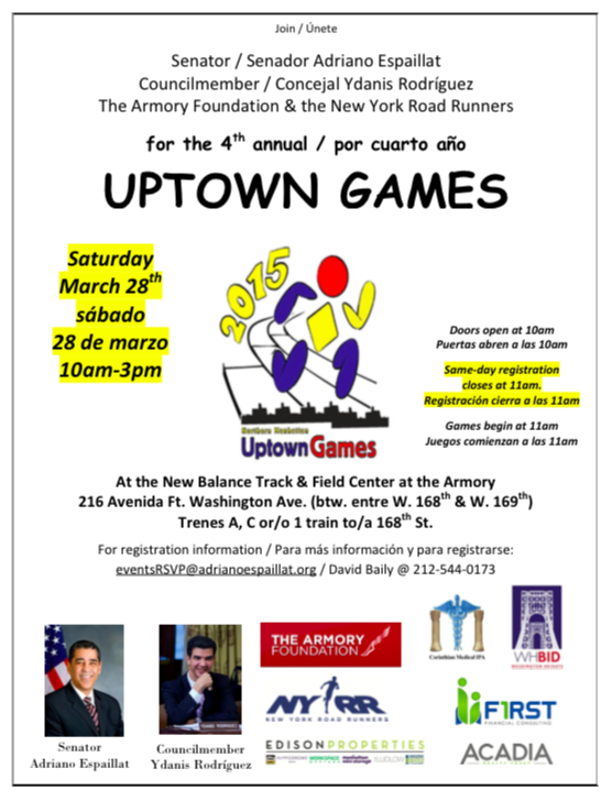 Get your application in for the #UptownGames in today!. @espaillatNY @MarkLevineNYC @nyrr @ArmoryNYCpic.twitter.com/RdKYOVLoZw