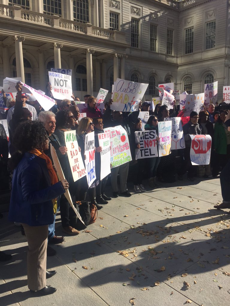 Crowds gathering at City Hall to fight #illegalhotels and protect #affordablehousingpic.twitter.com/X2VYcUvHho
