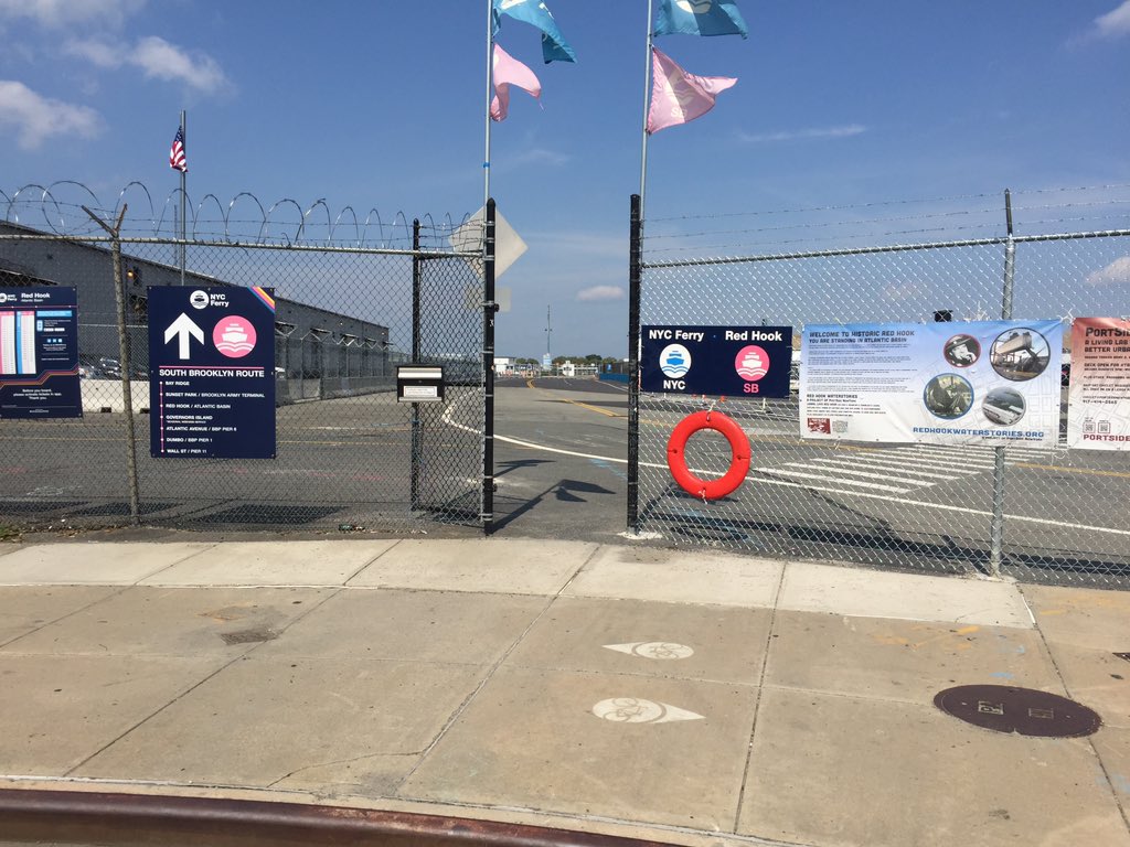 This uninviting fence marks the entrance of the new @NYCferry stop in Red Hook, @cmenchaca wants to open it up to peds,