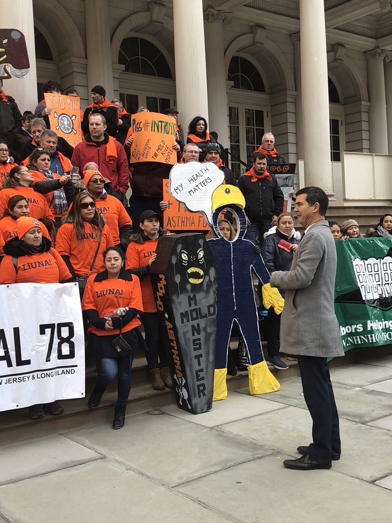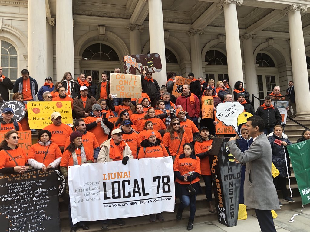 Congratulations to @LIUNA & @LiUNALocal78 for fighting for this law that will establish a local licensing requirement for persons who engage in assessing, remediating, or abating mold conditions. The law will also establish minimum standards for carrying out such work.pic.twitter.com/hSMvROlU3J