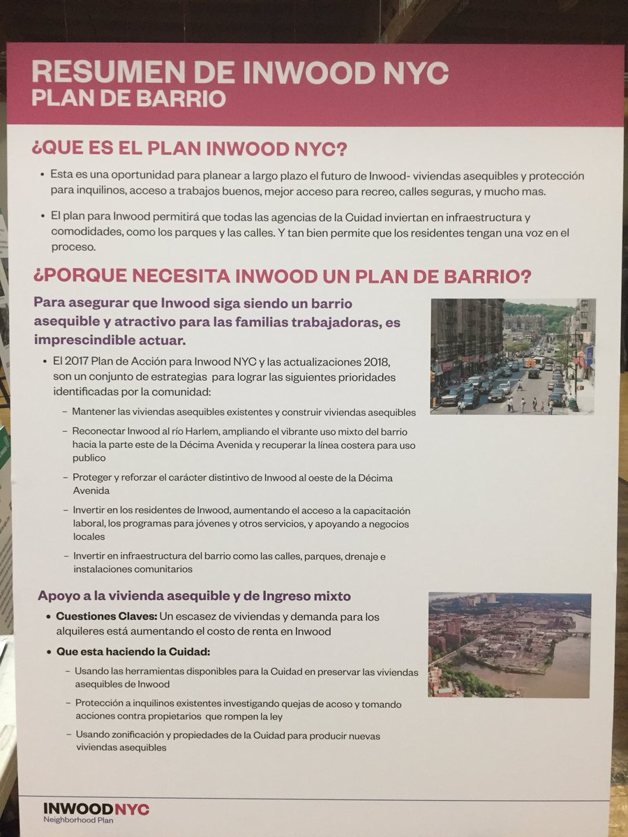 Feria de Recursos en Español para todos! Que es el Plan Inwood NYC? Un plan de largo plazo del futuro de Inwood con viviendas asequibles y protección para inquilinos, acceso a trabajos buenos, calles seguras y muchos más. Venga ahora. Manhattan Bible Church. 3816 9th Avenue.pic.twitter.com/xXHSYNPG6R