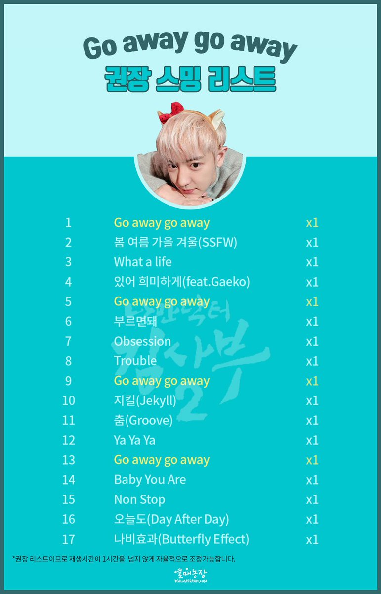 'Go away go away'의 스트리밍 인증화면을 캡쳐해주신 후 #찬열ost_스밍인증 해시태그와 함께 올려주세요. 오늘 자정 마감되며, 추첨을 통해 2분께 선물을 드립니다! ƠㅍƠ#찬열#CHANYEOL#엑소#EXO@weareoneEXOpic.twitter.com/WuzfoYtrx4
