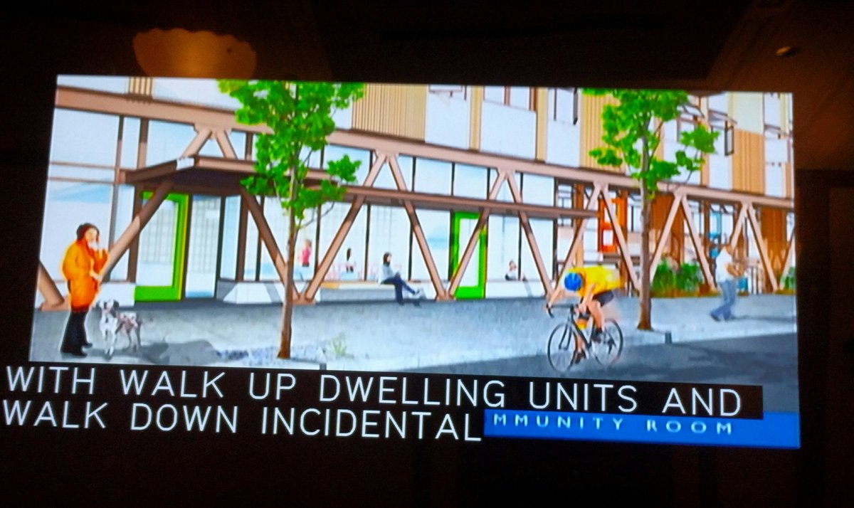 Increased capacity by eliminating car/parking! Cool garden/walk-down apartments. Looks sick!