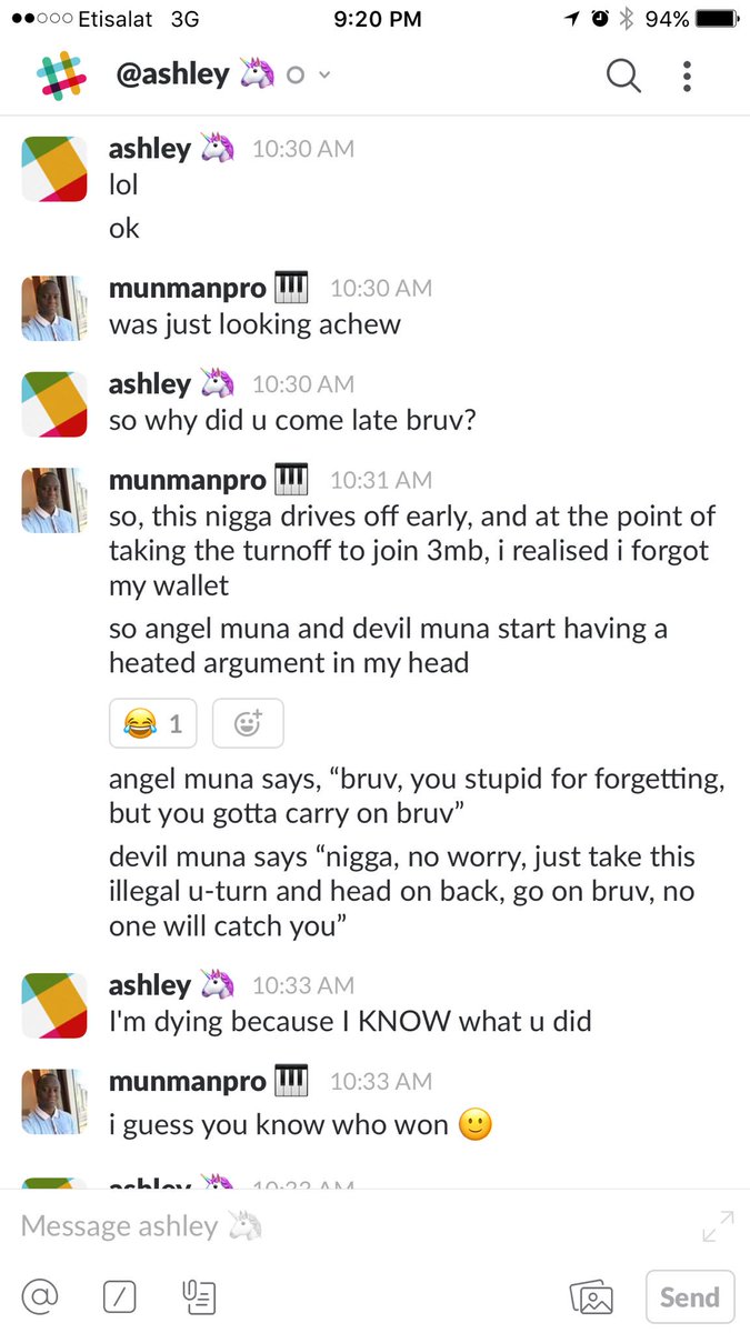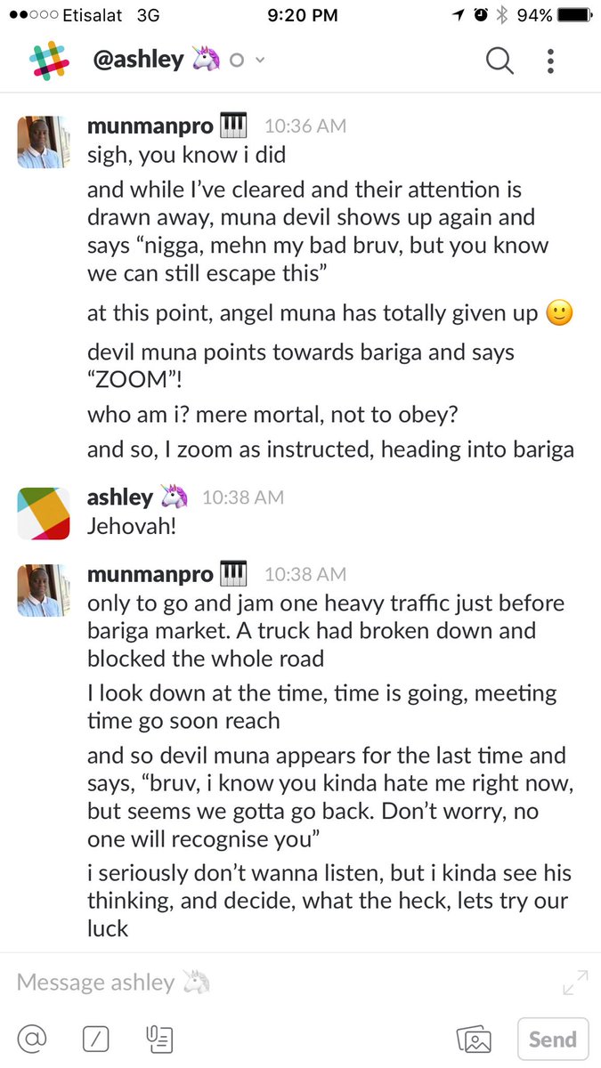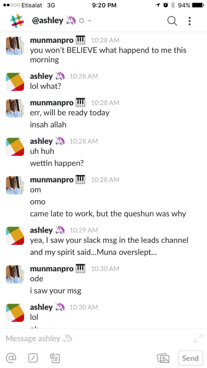 @Anakle's Slack channel. Shared an epic morning drive story with a colleague