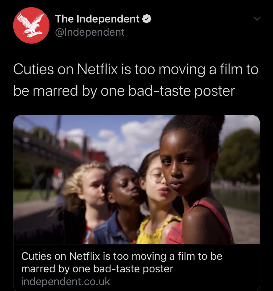 them: "if you're against 'Cuties' you're part of the right wing hate mob that wants to stop women's stories from being told" the parental warning: "this movie has a lot of sexual imagery of prepubescent girls" me:pic.twitter.com/UPVfzNzoHq