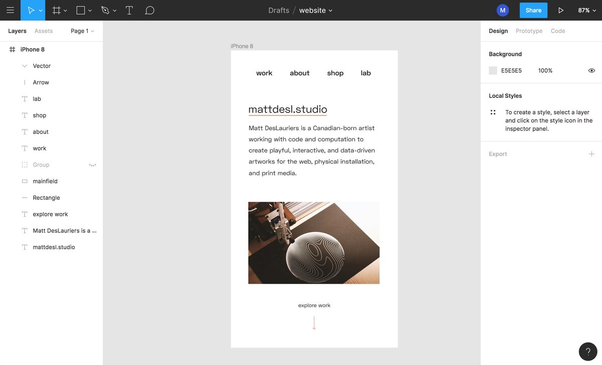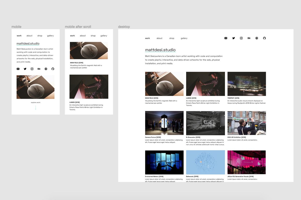 3.0 — more small tweaks, added about + "case study" (will be used for gallery & project deeplinks). Not sure of the best way to handle a long artist CV on mobile...