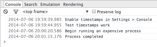 DevTools Experiments: display the exact time all console.log() messages get logged with Settings > show timestampspic.twitter.com/P2Q8xQExyd