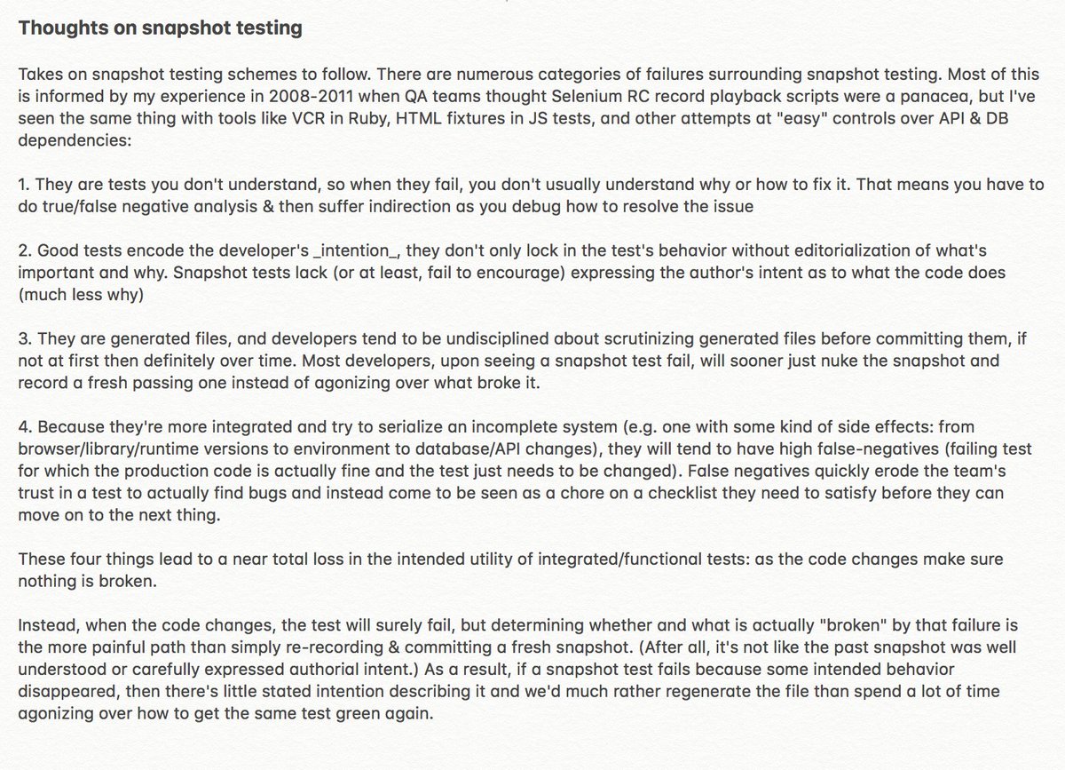 Gotta agree with the takes in this thread — snapshot testing: probably not a good ideahttps://twitter.com/searls/status/919594505938112512 …