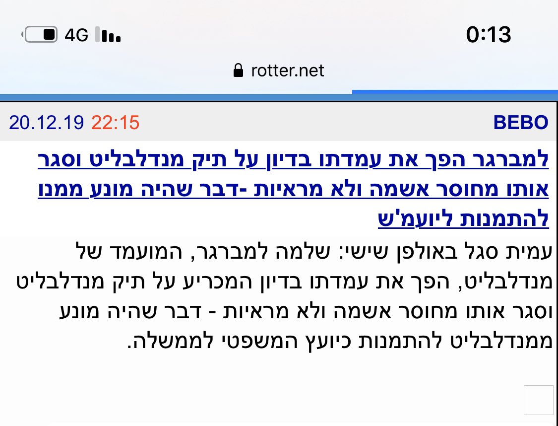 כל מה שמעניין את מנדלבליט זה שלא ימונה פרקליט מדינה שיחשוף את הקלטות שלו, ואת השחיתות שהשתוללה בפרקליטות בשנים האחרונות. זה כל עניין. אגב, התנגדותו גם למינוי הנוכחי של דן אלדד חושפת שהטענה כאילו הוא מתנגד למינוי של אורלי בן ארי בגלל שהיא חסרת ניסיון הייתה שקרית.