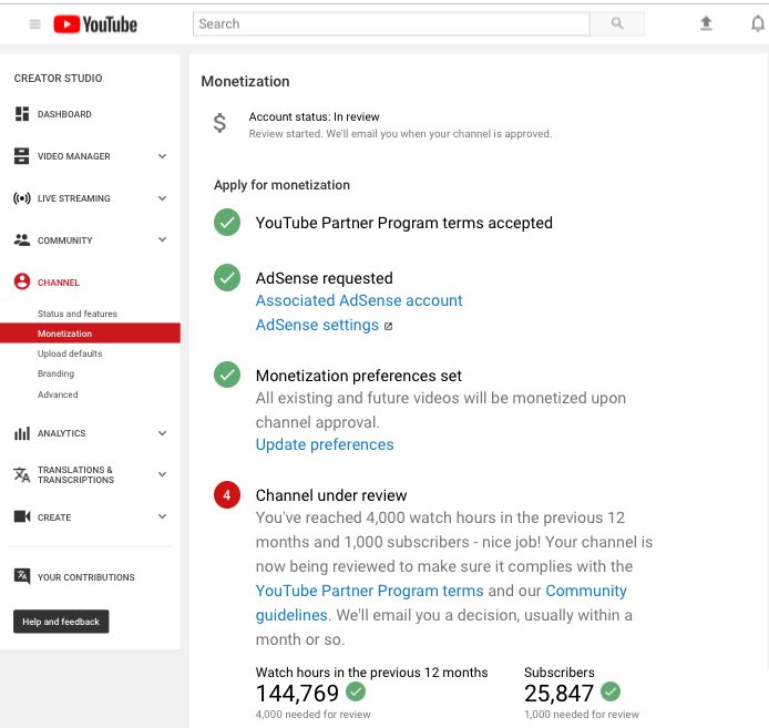 I completed my task 4000h watch time and 1000 Subscribers on 6 June 2018 almost 2 months now!! please monetize my channel soon thanks