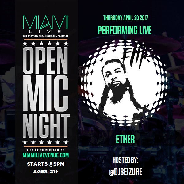 I'm performing at Miami LIVE Open Mic 4/20/17 - DJ Seizure! For tickets: http://c2c.fm/q3ACm