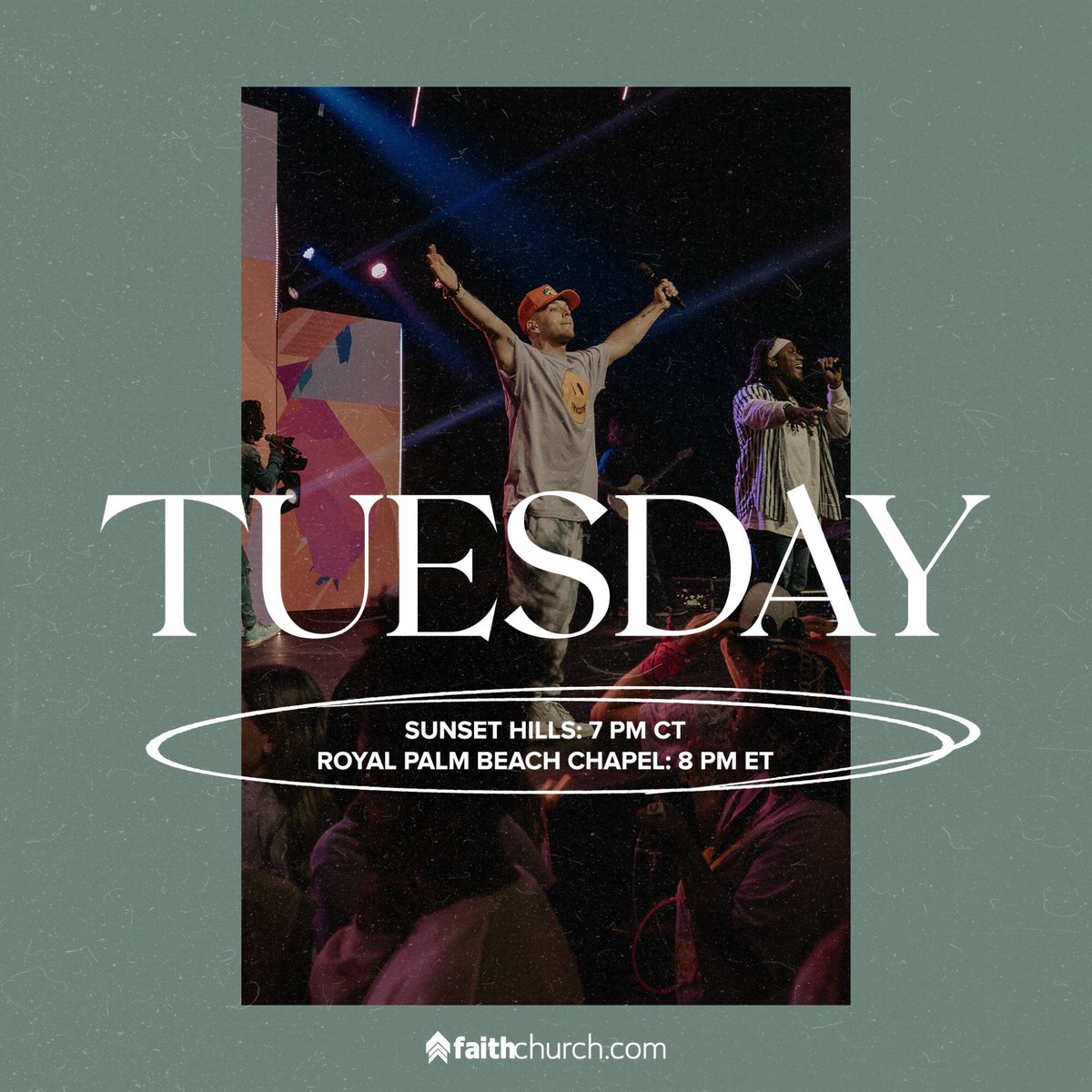 #TuesdayNight is better TOGETHER! There's a place for everyone so text a friend and get here! . Sunset Hills @ 7 PM CT Royal Palm Beach Chapel @ 8 PM ET Online @ http://FaithChurch.com/live .#faithchurch#banneryears#midweekpic.twitter.com/6Yyi05zQut