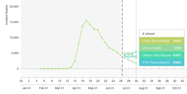 Just 3 weeks ago, there was a lot of disagreement on the future trajectory, even among the more accurate models. This is intrinsically a difficult problem and forecasts are probabilistic rather than perfect. I encourage looking at confidence intervals.https://twitter.com/reichlab/status/1275533827474100226 …